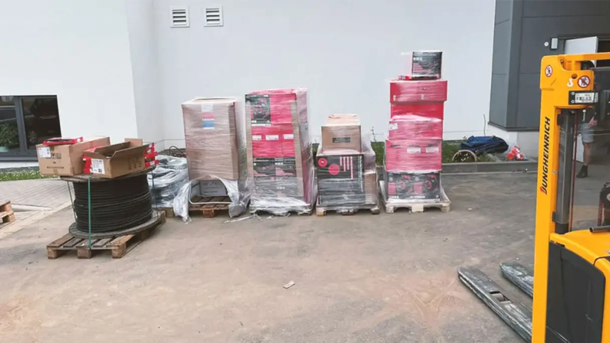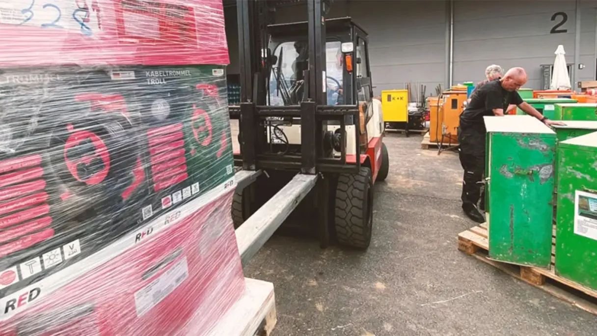 Zwei Tonnen Elektrogüter für die Hochwasserhilfe verließen früh morgens um 5 Uhr das Alexander-Bürkle-Lager