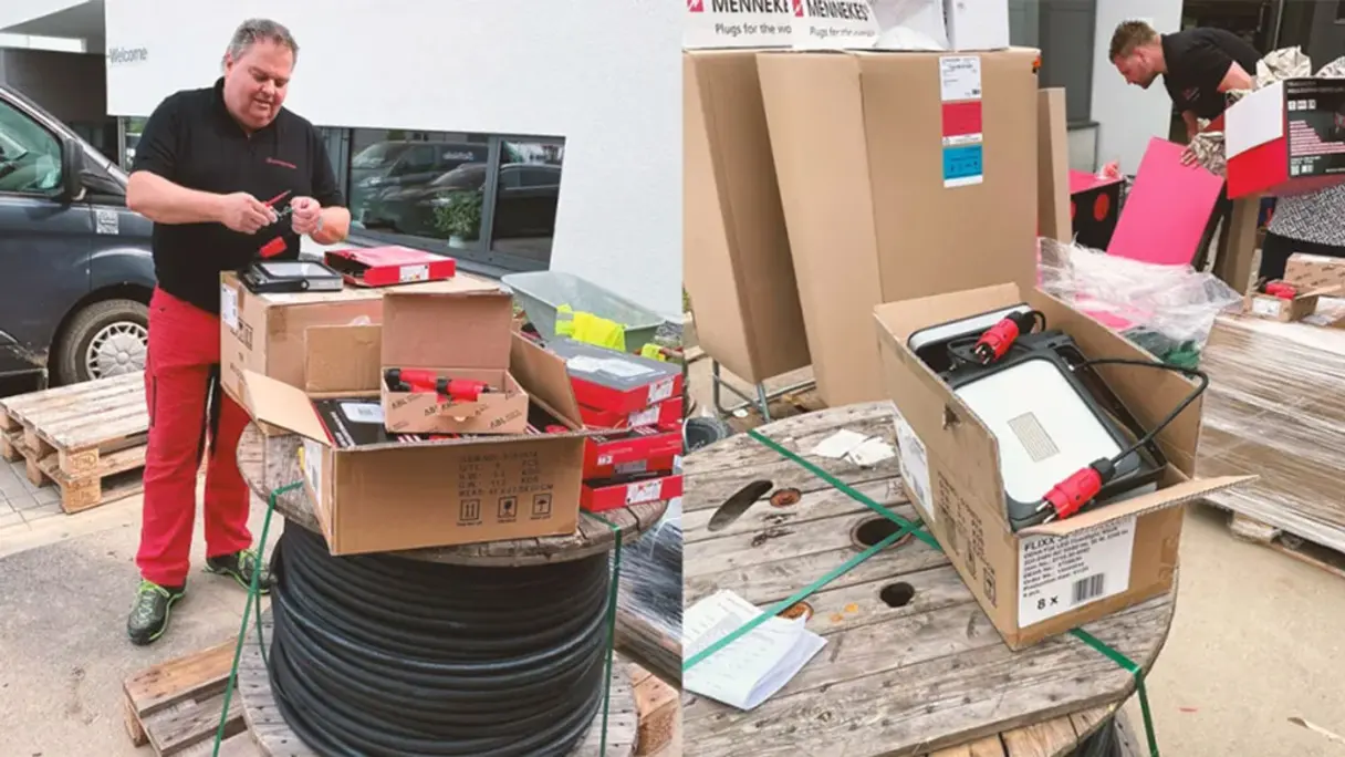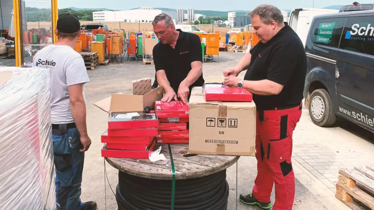 "Die Anfrage dazu kam gleich von mehreren Seiten“, berichtet Vertriebsleiter Harald Saulewicz, der die Aktion ins Rollen gebracht hat. Sowohl Kunden als auch Außendienstler von Alexander Bürkle hätten nachgefragt, ob sich das Unternehmen engagieren werde. Den Ausschlag gab schließlich ein besonders engagierter Kunde: die Elektro Althaus GmbH, deren Inhaber Matthias Rossel sich mit seinen Mitarbeitern an den Wochenenden freiwillig engagiert, um für die vom Hochwasser betroffenen Menschen im Landkreis Ahrweiler wieder eine Elektro-Infrastruktur aufzubauen.