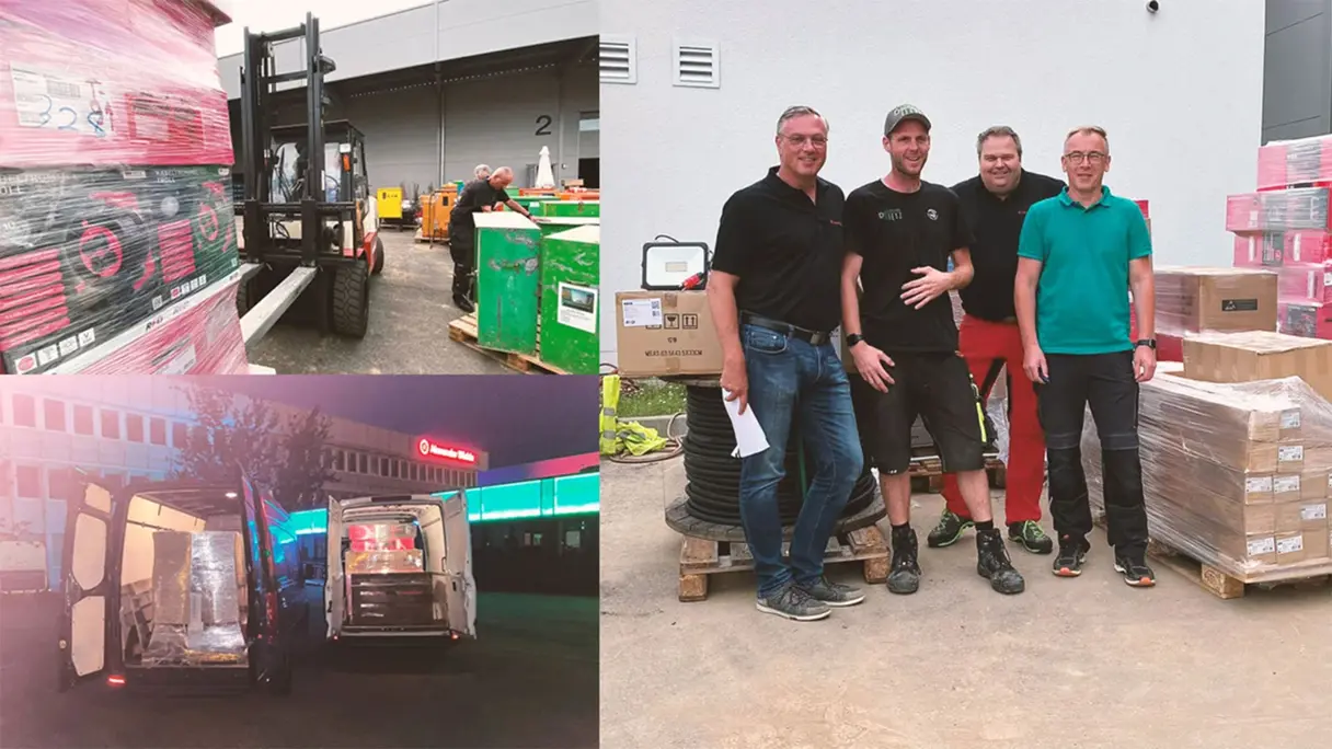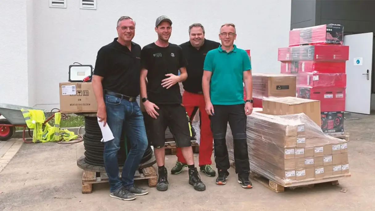 "Wenn sich unser Kunde so engagiert, wollen wir auch unseren Teil beitragen!“, dachte sich Harald Saulewicz – und die Geschäftsführung stimmte dem Plan innerhalb kürzester Zeit zu. Organisiert von Einkaufsleiter Andreas Hellinger und mit tatkräftiger Unterstützung von Produktmanager Martin Würstlin gingen die gespendeten Elektrogüter an die „Anlaufstelle für Elektro-Infrastruktur“ der Elektroinnung Ahrweiler, die für die schnelle Hilfe sehr dankbar war.